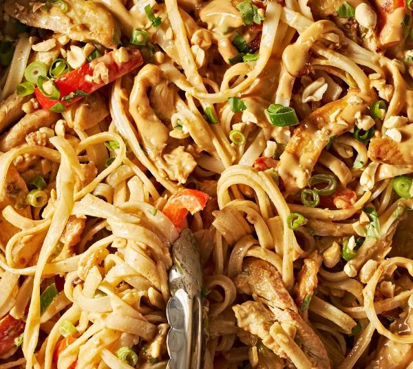 Who can resist the allure of rice noodles drenched in a rich and luscious peanut sauce? Not to mention, crafting these noodles at home is simpler than one may anticipate. The key lies in meticulous preparation before the actual cooking process. The prepping stage actually requires more time than the cooking itself: Prepare the peanut-lime sauce. Soak the noodles. Dice all the vegetables and chicken. Select and rinse your herbs, and finely chop the peanuts. Once these tasks are completed, the dish effortlessly comes together in no time!